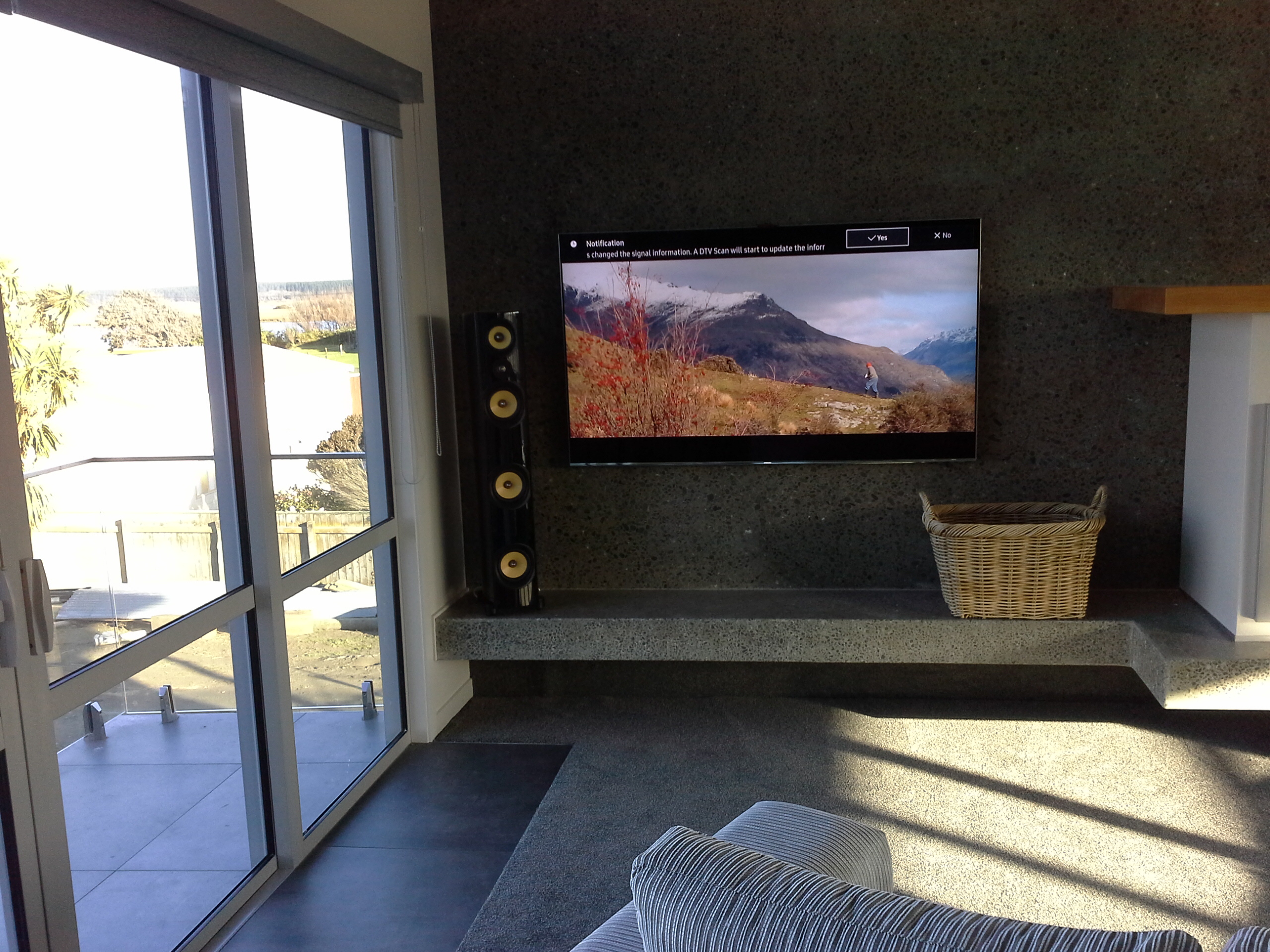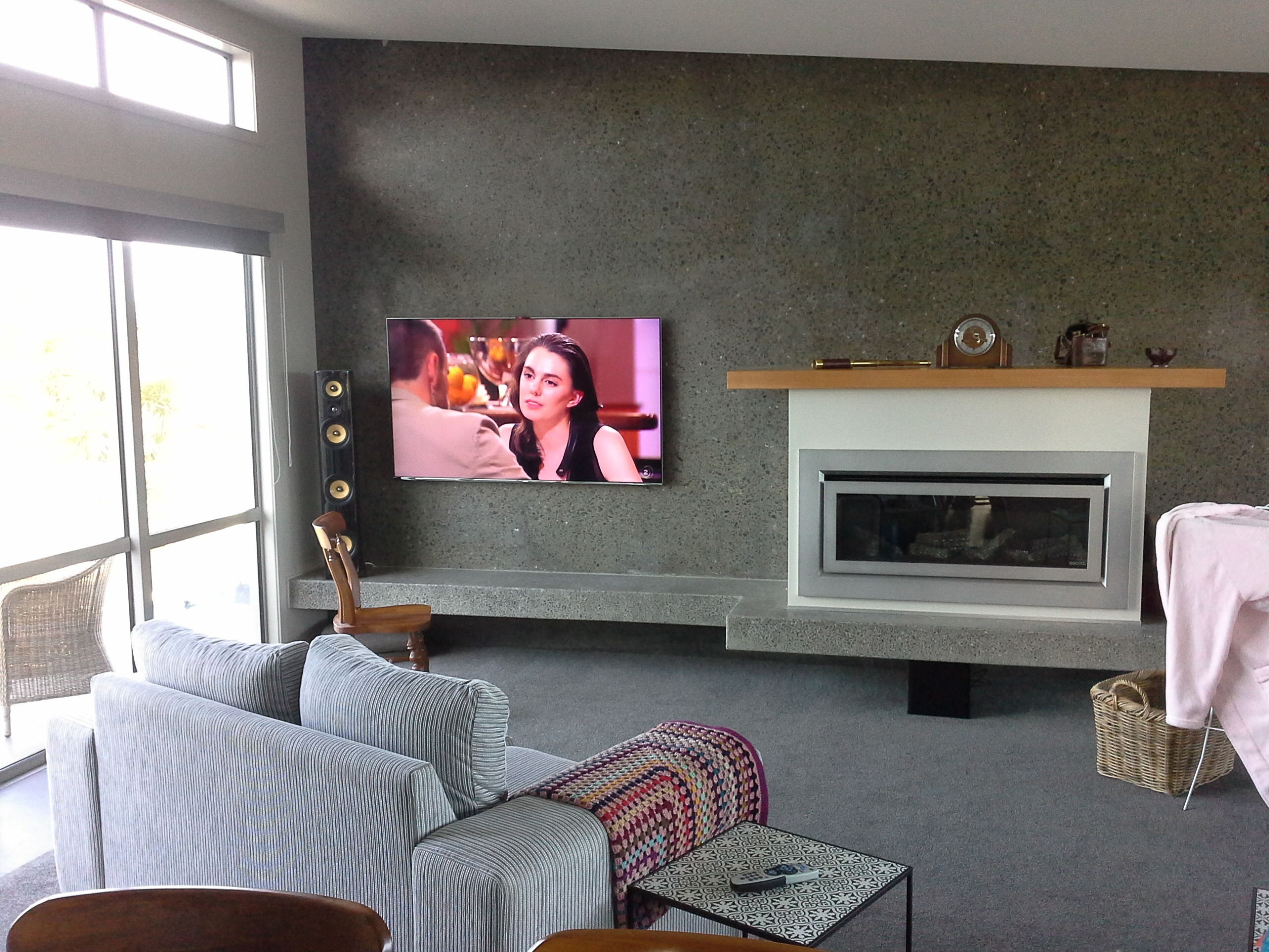 This was bespoke, high-end, multi zone entertainment solution. Three TV zones and four zones that play high fidelity music as well as TV audio. All easily controlled – that was a must for the client who “pleaded” ‘make it easy for us’. The concrete construction added a requirement for a level of expertise above the normal. This is where the right know-how, audio equipment, and pre-wiring skills are essential. Once concrete is poured, you can’t go back and change anything.
